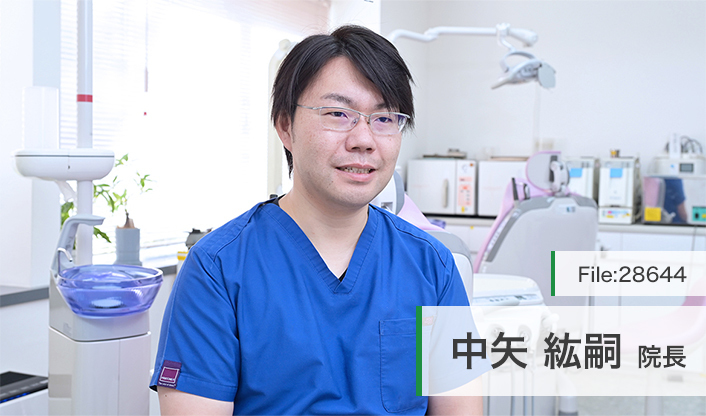 JR京都線高槻駅から車で10分、緑豊かな住宅地に位置する「なかや歯科医院」。院長の中矢紘嗣先生は2024年4月から父である中矢健二前院長から継承し、2人で診療にあたっている。平日21時までの院内での診療や訪問歯科診療など、地域のニーズに応える歯科医療を提供。父から受け継いだ「なるべく歯を削らず、抜かない」という治療方針と、先進の歯科医療の知見を組み合わせ、予防を重視した診療を心がけている。現在は3世代にわたって通院する患者も多く、長年の信頼関係を大切にしながら、父子二人三脚で地域に根差したクリニックをめざしている。継承の経緯から今後の展望に至るまで紘嗣院長に話を聞いた。