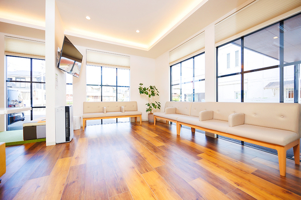 当院は私の父が開業したのですが、以前の建物は築40年以上がたっていましたから、一から新しい空間づくりをしようと考えました。私はこだわりの強い性分で(笑)、新しい歯科医院の建設に関しては設計士の方に図面段階からかなり細かく要望をお伝えして設計に反映していただきました。例えば、にんじん通りからスムーズに駐車できるように駐車場を整備してほしい、雨の日に足の不自由な方が車で来院された場合でも、傘を差さずに院内に入れるように、大きな屋根のある車寄せをつくってほしいなど。待合室は、ホスピタリティーを感じられるよう温かみのあるデザインにしました。整然とした造りだと、人によっては冷ややかな印象を受けるかもしれません。そうではなく、気軽に足を運べる雰囲気にしたいと思ったのです。