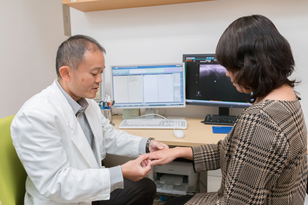 一つの治療法は、開始から3ヵ月ほどで効果判定を実施。患者から前回診察後の状態の変化を詳しく聞くとともに、血液検査やエコー検査、レントゲンなどで状態を確認。副作用が出ていないか、関節破壊の進行はないかなどをチェックし、薬の種類や分量などを調整していく。もちろん患者と相談しながら行われるので、「自分で打つタイプの皮下注射がいい」などの希望も叶えることが可能だ。無理なく治療を続けやすい環境になっている。