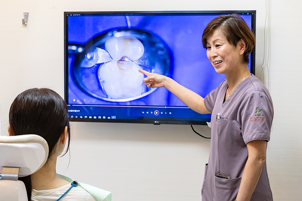治療箇所の長期的な維持が期待できるとはいえ、きちんと管理を行わなければ長持ちさせることはできません。自宅でのセルフケアはもちろん、歯科医院でのメンテナンスは必須です。でも定期的にメンテナンスを受けているのに、やっぱり虫歯ができてしまう方はいます。患者さんからすると、ちゃんと通っているのにと疑問に思われるかもしれませんが、お口の中の細菌の種類や歯磨きの状況、食習慣などは一人ひとり違いますし、そこは何とも言えないのが正直なところです。それより早期に虫歯を発見できたと捉え、その時点で一番良いと考える方法でしっかり治していくことが大事なのだと思います。