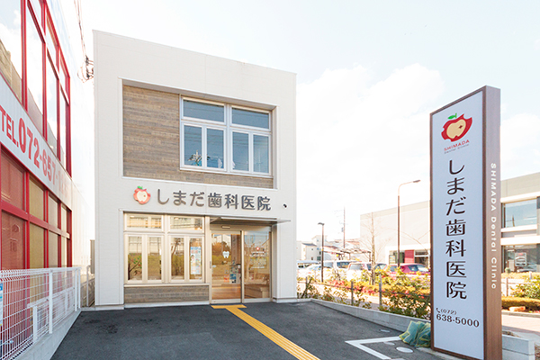 南茨木駅から車で約10分。若園公園の南東側、幹線道路沿いにある、2016年3月に開院した「しまだ歯科医院」。院内は、木目と白で統一された開放感と温かみのある雰囲気。一つの専門性にこだわらず、審美歯科、インプラント治療、ホワイトニング、小児矯正とオールマイティーにこなす島田泰博院長。撮影したCT画像を大きなモニターに映し出し、患者が納得するまで丁寧に説明を繰り返す。また、小さな子どもを連れていても通えるようにと、託児サービスも導入。「地域の皆さんのお口の健康を保つことにより、全身の健康を保つお手伝いをしたい」と、日々、真摯に治療に取り組む島田院長に、小児矯正に隠された思いから今後の展望まで、じっくりと話を聞いた。