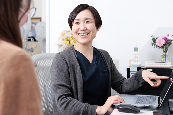 今主流となっているホルモン補充療法では、心配するような副作用はほとんどありません。例えば、乳がんは日本女性の約9人に1人が発症する病気で、補うホルモンの種類によってはリスク上昇が懸念されるのですが、今の薬はその可能性がとても低いといわれています。ただ治療に関係なく発症する方の多い病気ですから、 年1回の乳がん検査は勧めています。その他、胸が張る、不定期に出血するなどの副作用は、薬の使い方を調整すれば改善が見込めることが多いです。不安な点があれば、気軽にご相談ください。