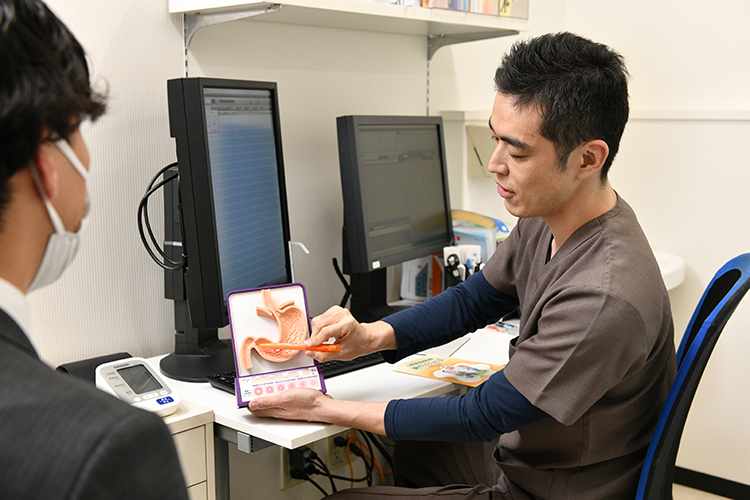 麻酔や鎮静剤を活用した負担の少ない内視鏡検査に努め、病気の発見や健康な体づくりのための定期受診を促す