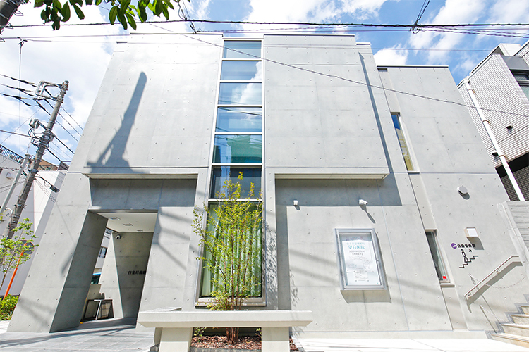 サイがクリニックのロゴマークになっているだけでなく、ゾウやうさぎなど、「耳鼻咽喉科」にまつわる動物たちのイラストも描かれており心が和みます。待合スペースにはアート作品が飾られ、通院患者さんが心地良く過ごせそうな空間演出がなされていました。上階には院長が愛するクラシック音楽の演奏会が行われるホールも併設。アートの息吹に満ちたクリニックです。