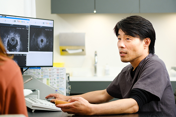 突然お尻を見られることに抵抗がある方も多いので、段階を踏んだコミュニケーションを大切にしています。診察前にお話して意思疎通を図り、診察時はモニターでカメラの画像をお見せしながら丁寧な説明を心がけていますね。あとは不安の払拭のため、看護師に私よりも患者さんに近い位置にいてもらっています。そして診察が終わって初めて排便管理の話をします。そこで患者さん自身が「生理前は便が硬くなるな」と気づけば、私たちの話も耳に入りやすくなるでしょう。長期管理において重要なのは、ご本人が納得し、治療効果を実感し継続していただくこと。治療内容についても「薬の量や種類を一緒に探していきましょう」と最初にお伝えしています。