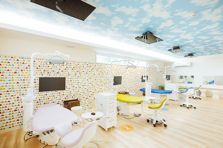 先代である父は先進的な考えの持ち主で、虫歯などの治療にとどまらず、睡眠時無呼吸症候群やドライマウスなど全身の健康と口の健康を結びつけた診療を早くから実践していました。私もその姿勢を受け継ぎつつ、2025年夏には院内を大幅リニューアルし、キッズ診療ブースと大人の診療ブースを分離。これにより、泣き声や雰囲気が相互に影響することなく、落ち着いて診療を受けられるような環境を整えました。また、自動受付機・自動精算機の導入で受付から会計までをスムーズにし、性能にこだわった滅菌機を備えるなど環境整備も強化。キッズブースには天井モニターやフラットタイプの診療台を設置し、楽しみながら診療を受けられる工夫も加えました。大人用ブースは天井を高くし、各チェアに口腔内バキュームを整備。外科用チェアも導入し、より快適かつ衛生的な診療環境を整えています。