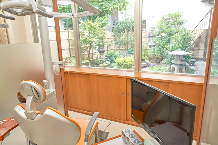 歯学部卒業後、私は口腔外科に興味を抱き、京都大学医学部の歯科口腔外科学教室に入局しました。京大病院での研修の後、十数年間いくつかの総合病院で歯科口腔外科分野の研鑽を積みました。仕事には非常にやりがいを感じていたのですが、やがて父の持病が悪化。地元で親しまれてきた歯科医院をなくすわけにはいかないという思いから、当時勤めていた京都市立病院を退職し、父の後を継ぐことにしました。その際に老朽化していた歯科医院を建て直し、現在のバリアフリーの姿になりました。歯科受診のハードルを少しでも下げようと明るく入りやすい雰囲気を心がけ、以前から多くの方たちに好評だった庭はリニューアルして残すことにしました。現在は個室を含めてチェアが5台。私のほかに勤務医1人が常勤し、歯科衛生士や歯科助手、歯科技工士らとともに診療体制を整えています。