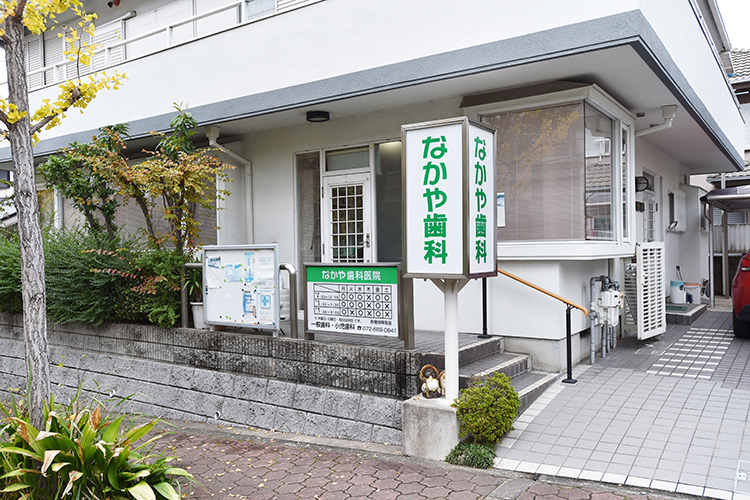 JR京都線高槻駅から車で10分、緑豊かな住宅地に位置する「なかや歯科医院」。院長の中矢紘嗣先生は2024年4月から父である中矢健二前院長から継承し、2人で診療にあたっている。平日21時までの院内での診療や訪問歯科診療など、地域のニーズに応える歯科医療を提供。父から受け継いだ「なるべく歯を削らず、抜かない」という治療方針と、先進の歯科医療の知見を組み合わせ、予防を重視した診療を心がけている。現在は3世代にわたって通院する患者も多く、長年の信頼関係を大切にしながら、父子二人三脚で地域に根差したクリニックをめざしている。継承の経緯から今後の展望に至るまで紘嗣院長に話を聞いた。