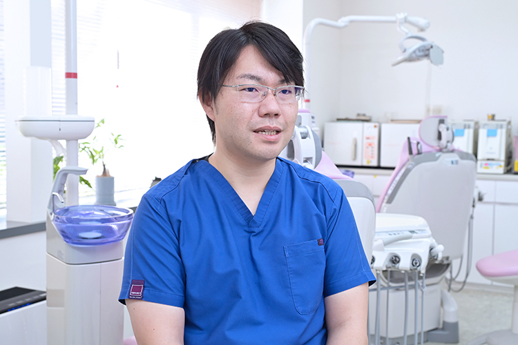 父の診療姿勢を受け継ぎながら、新しい歯科医療も取り入れていきたいと考えていました。神戸で6年間、勤務医として経験を積んでいた時期に、父から「早く戻ってきてほしい」と言われたんです。その後、私が高槻市の大阪府三島救急医療センターの休日診療をしていた時に父が病で倒れ、人生の転機となりました。2024年4月に院長を引き継いでからは、患者さんの診療はもちろん、スタッフの働く環境づくりにも力を入れています。現在も父には診療に携わってもらい、それぞれの経験や知識を生かしながら、より良い医療を提供できるよう心がけています。長年通院いただいている患者さんにも安心して通い続けていただけるよう、自然な形での移行を考えてきました。