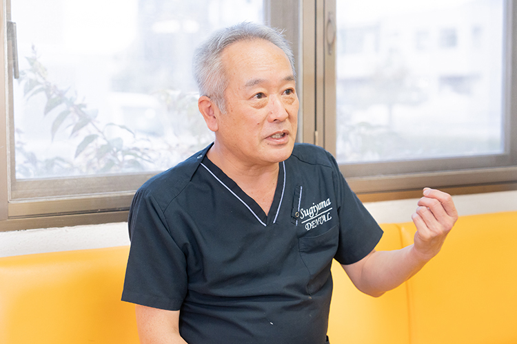 前院長の杉山先生のもとで22年間勤務し、多くの勉強をさせてもらいました。私にとってはヒーローのような存在ですね。何に対しても貪欲に吸収する姿勢を持っていて、さまざまな専門分野の知識を深めています。そういった勉強熱心な杉山先生の取り組みが、今の当院の特徴である、幅広い治療に対応するところに繋がっているのだと思っています。杉山先生の築き上げたものを維持・継続していくよう努め、今後も先生から学んできたことを私も患者さんに還元していきたいと思っています。