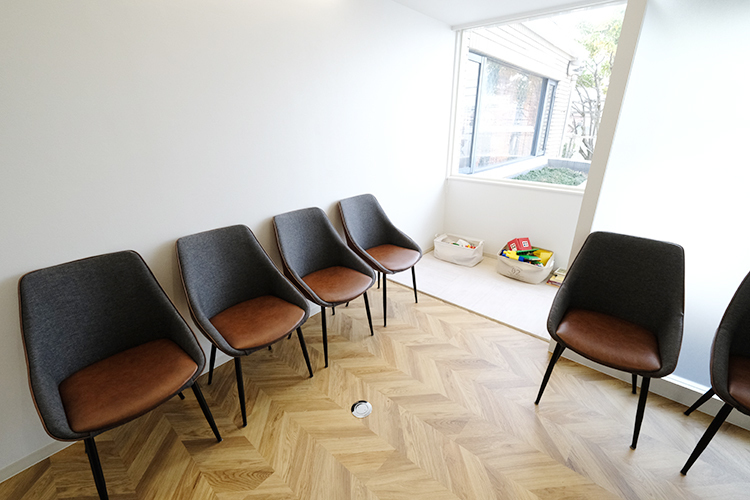 【恵奈先生】院内は全体的に白を基調としました。待合室には木材を使って温かみを出し、診察室はほぼ白一色。雰囲気に差をつけています。また、以前は入り口の自動ドアから院内に冷たい風が入ってきていましたので、リニューアル時に風を防ぐ壁を作りました。その分キッズスペースがコンパクトになりましたが、子どもたちはよく利用してくれていますね。