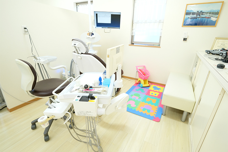 育児でお子さん中心の生活となり、自分のことを後回しにされてきた女性の中には、40代や50代といった若い年齢でも虫歯が複数本あり、歯がボロボロという方もいらっしゃると思います。「痛い、怖い」というクリニックに対するネガティブなイメージから足が遠のいていたという場合もあるでしょう。ですので、ネガティブなイメージを払拭するために麻酔をする際にも拡大鏡を用いて注射する角度に注意を払い、痛みが少なくなるよう配慮しています。また、診療環境についても、できる範囲で整えています。診療チェアの横にフロアマットを敷くこともできますので、ぜひ小さなお子さんを連れていらしてください。私自身、2児の父親でもありますし、当院のスタッフは全員が子育て経験者です。親御さんの治療中もお子さんを見ていることができますし、一緒に遊んでいることもできます。赤ちゃんの場合、抱っこしていることもできますよ。