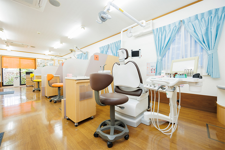 当院をリニューアルしてからもう20年以上になりますが、スタッフのおかげで院内は常にきれいです。来院された患者さんがスタッフと楽しそうに話している姿を見ると、私もうれしい気持ちになります。スタッフにはそれぞれ好きな色のユニフォームを着てもらっていますから、それはもうカラフルですね(笑)。私自身も日によっていろいろ変えています。内装も明るくなるように空の壁紙を貼って、窓にも空のフィルムを貼りました。日光が入ると、青空が広がるようできれいですよ。また治療とは別に、検診専用の診察台を設けています。これは歯科衛生士専用のケアスペースで、治療の場所と分けることで、患者さんに少しでもリラックスしていただければと思っています。