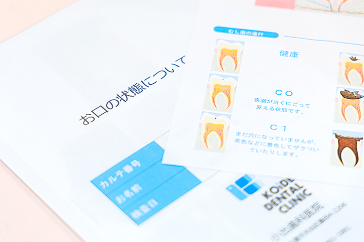 当院の定期検診は3ヵ月ごとの来院をお願いしています。3ヵ月というのは少し歯石がつき始めるくらいの頃合いなので、そのタイミングで掃除をするのが適しているんです。定期検診では、歯科衛生士による歯磨きのチェックと掃除を行っています。その内容であれば時間もそんなにかかりませんし、お互いに幸せですよね。あと当院では、検査結果などをまとめた資料もお渡ししています。新規の患者さんにはエックス線画像や口腔内の状態をデータ化してわかりやすくした内容の冊子を配布し、定期検診の際には歯周ポケットの状態を把握できるような資料を持ち帰ってもらいます。歯周病のケアは普段の歯磨きが非常に重要ですから、ご自分の口腔内への理解を深め、正しいセルフケアを身につけていただいきたいと思っています。