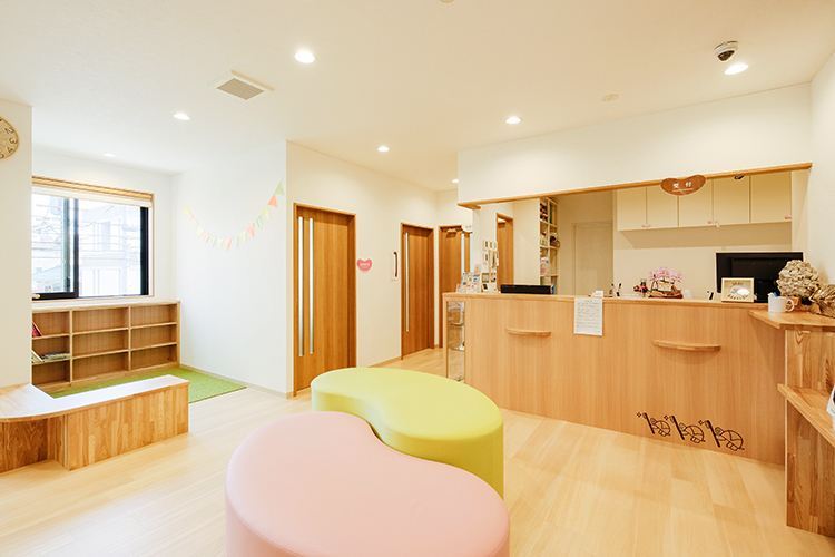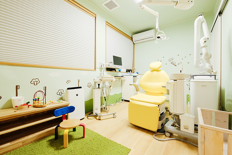 【坂井院長】はい。そのため受付は立ったままでも、車いすのままでもできるようにカウンターに段差をつけて高さを替えています。診療のチェアも障害がある方のための特殊なものが2台あります。また、トイレはどなたでも使いやすいユニバーサルデザインで、子ども用の椅子、おむつ交換台も備えています。さらに、これは珍しいと思うのですが待合室には洗面台のついた個室待合室があります。障害がある方はもちろん、子どもの泣き声を気にされるときはご家族そろって入っていただけます。診療は、そのまま隣の個室ユニットに移動するだけです。お子さんに障害があると、お母さんは一人ですべてを抱え込みがちなのですが、お気軽に相談していただければと思います。訪問診療にも対応しています。