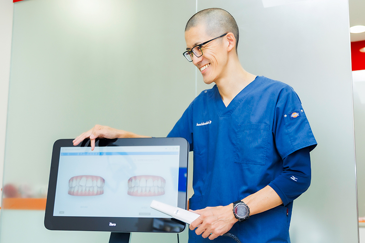 検査・診断・治療を進める上で口腔内専用カメラやマイクロスコープ、光学式う蝕検出装置、歯科用CTなどに加えて口腔内スキャナーやフェイススキャナーを駆使しています。ただでさえ自分では見えにくい「お口の中の悩み」。患者さんの負担を減らしつつ現状を把握し、一人ひとりに合わせた治療選択肢の提案のためにも、診療の質を高める設備導入は欠かせません。最近では従来に比べ被写体深度が深く、よりスピーディーに精度の高い検査ができる口腔内スキャナーに更新しました。歯科におけるデジタル化の進歩は早く、今使用しているのは2019年の初代導入から3代目のスキャナーです。