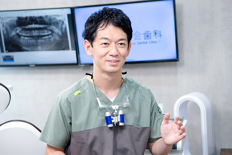 「患者さまの笑顔を守る」をモットーに、その満足度をより高められるような診療をめざしています。そのためにはお口の中を詳細に検査し、症状へのご不安やご希望をしっかり伺った上で適切な治療をご提案することが大切です。特に現在ある症状だけでなく、その原因となっている口の中の状況、例えば歯並び・噛み合わせの乱れ、磨き残しができやすい歯磨きの癖、食事をはじめとした生活習慣などにもアプローチする、再発しにくい口腔環境づくりが重要と考えています。また、インプラント治療、マウスピース型装置を用いた矯正、セラミックを使った審美面への配慮など、多様なご希望にも対応可能です。六会地区は長く住まれている方も多い印象です。納得いただける診療をめざし、地域の皆さんと長くお付き合いできればと思います。