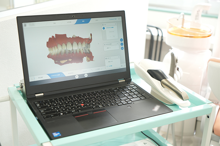 もともと40年続いたクリニックで、古くなっていたので改装を加えました。院長室や院内技工室だった空間は2つの個室に整え、インプラントなどの手術やメンテナンスに利用しています。また、ユニットは1台増設して4台とし、ユニット間のスペースも広めに取りながら仕切りを入れたことで、プライベート感を確保しました。歯科用CTつきのレントゲン装置や口腔内スキャナー、レーザー機器も導入しています。歯科用CTの活用により患部を3D画像で詳細に把握することができますし、口腔内スキャナーを使えば短時間で精密な歯型のデータが採取できるため、患者さんの負担を減らしながら、精度の高い補綴物の製作につなげています。レーザーは歯周病や口内炎、知覚過敏などの治療に使えるエルビウム・ヤグレーザーを導入しています。