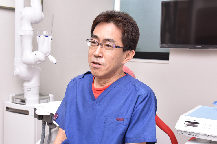 できるだけ患者さん自身の歯を残す治療をしたいので、特に入れ歯やブリッジなどの技術を用いて、失った歯の機能を取り戻すための補綴歯科と、歯周病の予防に注力しています。現在は歯周病で歯を失うケースが増えてきましたので、おのずと歯周病の予防や治療に力を入れるようになりました。また、歯を失った方の入れ歯治療にも注力しています。特に女性患者さんからは、金具の見えにくい入れ歯のニーズが高いですね。なかなか入れ歯が合わないと悩む方に喜んでいただけることが、やりがいにもつながっています。