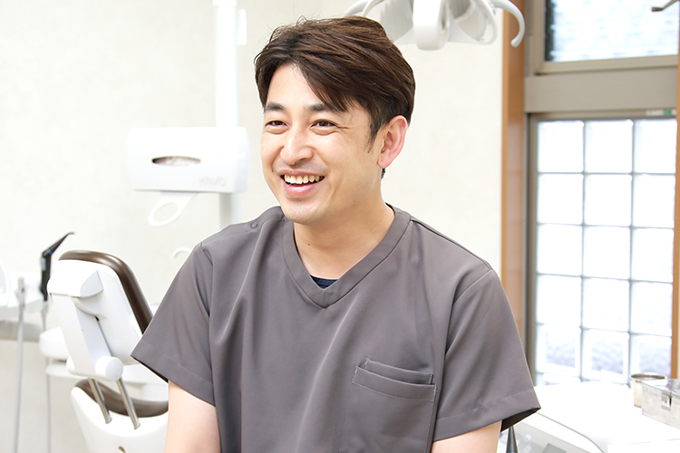 当院は1986年に父が開業した歯科医院です。学生時代は、医療とは別の道を考えたこともありました。しかし、日々来てくださる地域の患者さんの姿や、毎日診療している父の背中を見ていて、徐々に気持ちに変化がありまして。当時、近隣に歯科医院が少なかったこともあり、当院がなくなったら地域の患者さんがお困りになるだろうと考えたことと、私としてもこの場所がなくなってしまうのは寂しいと感じるようになりました。高校生の時に、歯科医師となって父の歯科医院を継承しようと決意したんです。歯学部を卒業後、10年ほど複数の歯科医院で研鑽を積み、2021年に院長を引き継ぎました。