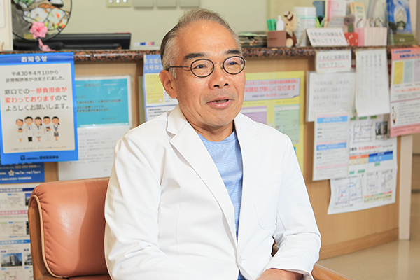 来院されるのはほぼ、この近隣地域にお住まいの方です。私の専門は神経内科ですが、地域のかかりつけ医としての性質上、風邪の諸症状や腹痛、お子さんの急性疾患で来院される方が多いですね。あとは生活習慣病です。糖尿病などは特に、治療が長期間になりますので患者さんとのコミュニケーションも大事です。食事内容などプライベートな部分にも関わりますので、まずは患者さんとしっかりお話をして治療方法を一緒に考えています。心療内科も標榜していますので、ストレスからくるさまざまな体の不調を訴える方もいらっしゃいますよ。地域の開業医ですので、大きなけがは対応できないこともありますが、ちょっとしたけがであれば消毒や処置をすることもあります。これはできないと決めつけることはなく、住民の皆さんのニーズに応えて幅広く対応しています。
