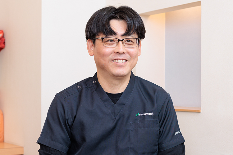 元気に対応することを心がけています。歯科医師やスタッフが元気でないと、患者さんの気分も落ち込んでしまうと思ってのこと。ですから、常に笑顔を絶やさずに、こちらから積極的に声をかけるようにしています。治療の前後は必ず詳細に説明しているので、患者さんは「どんな治療をされたのだろう……」といった不安を感じにくいのではないでしょうか。また、最初は緊張していたのに、次第にいろいろと話してくれるようになる様子を見ると、患者さんが話しやすい雰囲気にもつながっているのだと実感しています。僕自身、患者さんとお話しするのが大好きなので、会話が盛り上がるとうれしいですね。ただ、盛り上がり過ぎて、スタッフから「先生、話しすぎ」と言われることもしばしばあります(笑)。