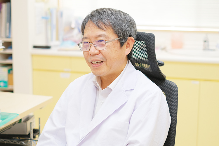 お子さん、親御さんの不安を取り除くことでしょうか。お子さんの日常の小さなことが気になるという方もいますので、そういった皆さんに安心してもらい笑顔で帰っていただくことが一番大事だと思います。よくいわれる「病気には厳しく、人には優しく」というのを念頭に置きながら、例えば治療中、注射などで泣いてしまうお子さんに対しても、顔を見て声をかけながら診療するように心がけています。
