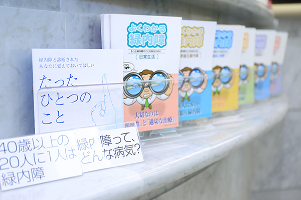 【佳明院長】待合室にパンフレットを置いたり、目の疾患に関心を持ってもらえるよう努めています。ジェネリック医薬品も取り入れて医療費の負担を軽くする工夫もしていますが、点眼薬を1回もらってそれきりになる患者さんも多いのが心配ですね。そこで、しばらく来院されていない糖尿病や緑内障の患者さんには、はがきを送って検診を促すなど、私のほうから積極的に目の健康を守るよう働きかけています。