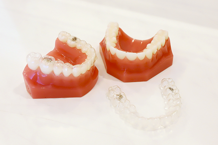 そうですね。先ほども申し上げたとおり、矯正を希望する患者さんが増えてきていることから、ニーズに合った矯正をご提供したいと思い1年半ほど前から本格的に歯列矯正に取り組み始めました。当院ではマウスピース型装置を用いた矯正を行っているのですが、矯正する範囲に応じて装置を使い分けています。マウスピース型装置を用いた矯正のメリットは歯磨きがしやすい、目立ちにくい、ワイヤー矯正と違って唇や口腔内を傷つけにくいといった点です。ただし、取り外し可能な分、患者さんの強い意思が必要になります。1日20時間以上、できれば食事の時間以外は装着していただくのが理想です。当院では1週間に1回マウスピース型装置を交換していただくことになっていまして、患者さんには1ヵ月分の4つの装置をお渡しします。そして1ヵ月に1回来院していただき歯の動きをチェックさせていただいています。