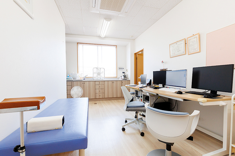ご高齢の患者さんに対しては、特に大きな声でゆっくりとお話しすること。それから院内が混雑していても、治療説明などが早口にならないようにすることを心がけています。急性期の病院ではスピード感が求められますし、患者さんも若い年代の方が多かったので、診療も素早い対応になりがちでした。けれども現在は、診察室の雰囲気も患者層もガラッと変わりましたから、環境に応じた対応をと考えています。患者さんに対するご説明の仕方も、日頃から気をつけている点ですね。例えば、病院にいた頃は「脂肪が多いので痩せてください」などと直接的に指示していましたが、当院ではそんな発言はしません。腹部や心臓のエコー検査を行う際には、「ちょっと奥が見えにくいので、体重を落としましょうね」と丁寧にお伝えしています。