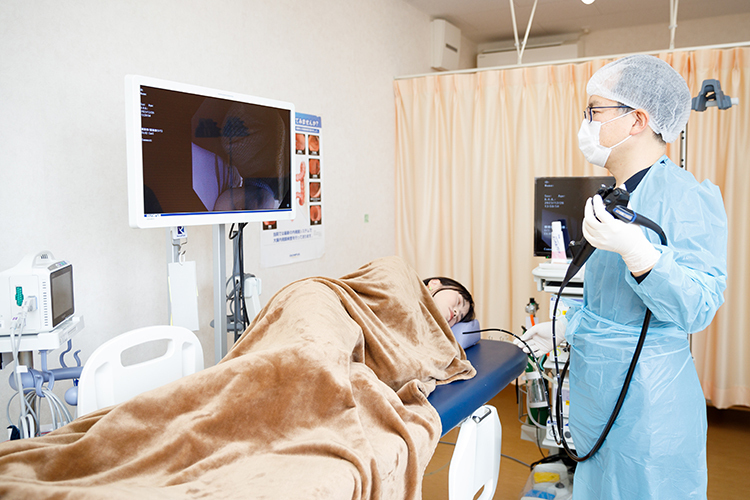 健康診断の採血だけでは、なかなかがんを見つけられません。がんの診療に携わってきた経験を生かし、内視鏡検査などのがん検診を積極的に勧めていきたいです。特に、罹患率が高い大腸がんには注意をしていただきたいと思います。早期がんであれば、先ほどお話ししたような新しい治療法によって切除を図れますので、便潜血検査も推奨しながら、早期発見・早期治療に努めます。さらに消化器だけでなく、循環器についても、より幅広く診られるようにしたいと考えています。いずれの分野もニーズが高く、循環器内科では高血圧症や糖尿病といった生活習慣病の罹患者が増えていますので、患者さんの生活習慣にも気を配っていきたいです。私も含め、このエリアにはうどん好きの患者さんが多いのですが、うどんはどうしても、カロリーが高めですから(笑)。