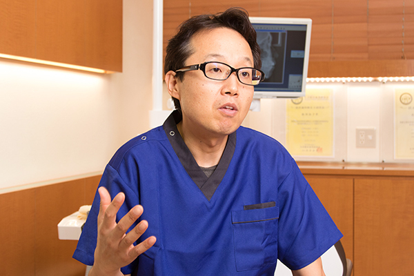 田舎でもないけど都会でもない、当院のような場所にある歯科医院に来るときは、地元の方でも少し警戒するようです。そんな、不安な中で期待以上の治療を受けられたと非常に満足していただけたときは、やはりうれしいですね。都内のクリニックに通っていたものの、退職などを機に地元で診療を行っている当院を訪れてくれた患者さんから、「先生に治してもらってよかった」「諦めていたのに信頼してよかった」「歯周病の話を初めて聞いた」という言葉を聞ければ、やっていてよかったと思いますね。私たちは人の体を治すことが仕事で、体はその人の「人生」に関わってきます。一歩間違えば生涯、歯で苦労する人もいらっしゃる。このことを肝に銘じて日々診療にあたっています。