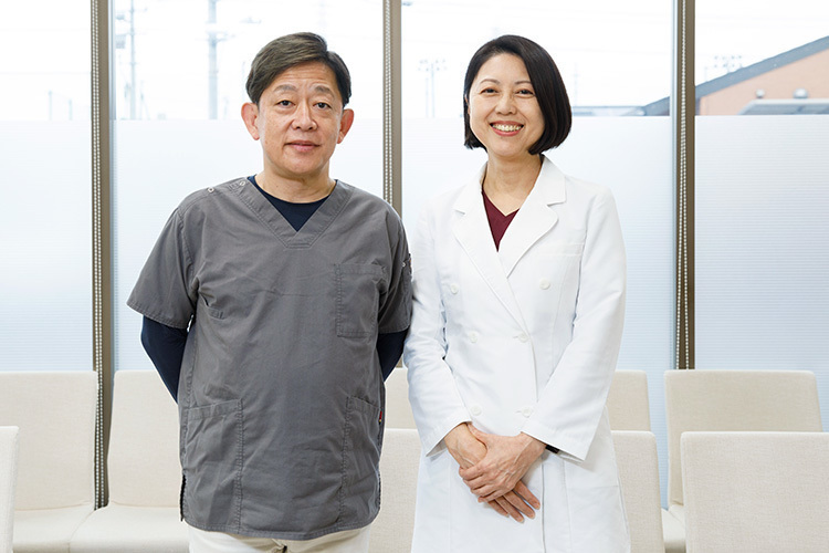 【二美先生】結婚前は京都府立医大および関連病院で勤務をし、結婚後、愛媛大学医学部附属病院や西条市立周桑病院などで勤務していましたが、子育てをしながら地域の患者さんを診ていきたいと思って、2008年にまずは私がここで開業しました。ここに根づいてより行き届いた治療を提供したいと思い、2人でクリニックをつくってきました。