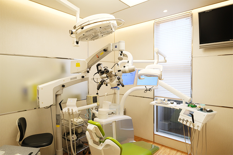 プライバシーに配慮し、一つ一つの診察台はスペースを広く取りました。天井を高くし、診察台の周りのスペースを広く取ることで、圧迫感を減らして患者さんの緊張を少しでも和らげればと思っています。診察台は3つあり、1つはオペが可能な個室になっています。普段は見通しを良くするために個室には窓を設けているのですが、オペを行う際は外から見えないようにすりガラスに切り替える機能を導入しています。もちろん、治療に使う道具にもこだわっています。驚かれることもあるんですが、保険適用の治療の範囲でも必要だと思えばマイクロスコープを使って治療に臨みます。本当に患者さんのことを考えたら妥協はできないんです。患者さんに提供する治療がより良いものになるなら設備への投資は一切惜しみません。
