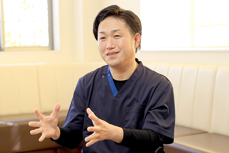 朝日大学歯学部を卒業後、神奈川県の歯科医院で3年間勤務しました。父も歯科医師なのですが、患者さんを仰向けに寝かせた状態で行う水平診療をしていたこともあり、水平診療を勉強するのにはいいのではないかと勧めてくれたのが、その神奈川県の歯科医院でした。水平診療というのは、患者さんにとっても歯科医師にとっても体への負担が少ない診療スタイルなのです。そこでは歯周病や噛み合わせの専門的な治療方法や、歯科医師としての技術と心「口を診ず、人を診る」という診療における考え方や患者さんへの接し方など、多くを学びました。3年間勤務した後、津島市にある父の歯科医院に3年間勤務、その後2009年に当院を開業しました。ずっと父の背中を追いかけてきましたが、今は父を超える歯科医師になるために、私だからこそできる現代に合った治療法の導入や、新たな知識の吸収にも力を入れています。
