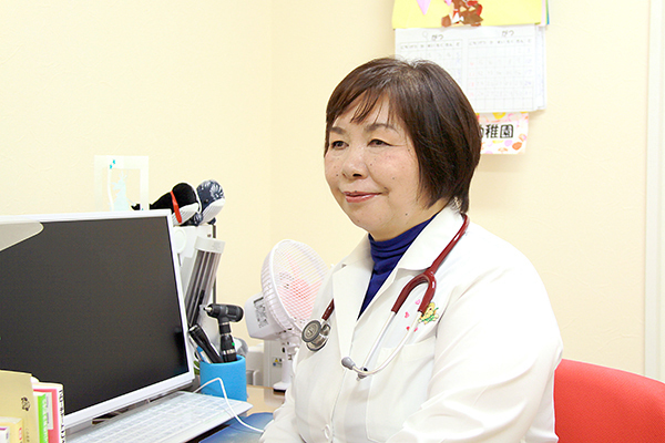 小児科の医師として、お子さんがうまく言えない症状を診るために、毎日見ているご家族からの情報をお聞きするのはもちろんですが、まずはお子さんをよく見るようにしています。お話ができる年齢だったら本人とお話をし、「痛いのはどこなのかな? どんなふうにつらいのかな?」と聞きます。お話をすることで、どんなに小さくても治療に理解を示してくれたり、お薬を飲んでくれることもあるので、お話をすることが本当に大切だと考えています。また、離乳食の進め方や排便・肥満に関するご相談も多く、月に2~3回、管理栄養士による予約制の栄養指導も行っています。お子さんの成長発達に合わせたサポートができるように心がけています。