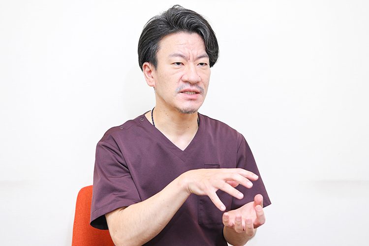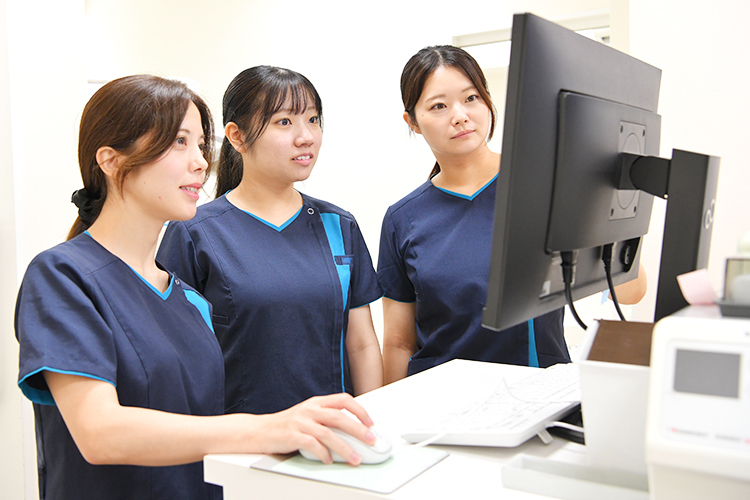 歯を失う原因は主に3つ、虫歯と歯周病、そして歯や歯根の破折です。歯科衛生士は、このうち歯周病のケアに特化したスペシャリストになります。担当の歯科衛生士が画像撮影や各種検査を通して患者さんのリスクを判定し、歯科医師と情報を共有しながらそれぞれに合った予防プログラムを立案・提案。歯の健康の伴走者として、患者さんと一緒に長期的なケアに取り組みます。当院にはベテランから若手まで複数の歯科衛生士が在籍していますが、それぞれ診療の中心を担うプレーヤーだと考えています。予防プログラムを継続する上でトラブルが起きたり、矯正などの必要が出てきたら、そこからが歯科医師の出番と考えています。