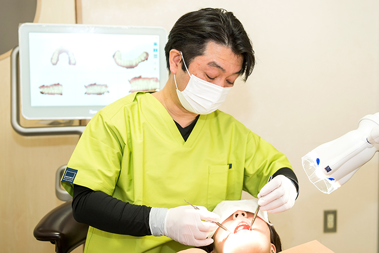 まずは歯科治療の基本である、「削る」、「かぶせる」という技術を身につけなければと感じ、補綴の専門性を高めることに専念しました。しかし、治療を続けていくうちに、歯並びが原因となっているケースが多いことを実感したんです。歯列が整っていないと、凸凹した箇所、歯が重なった部分はブラッシングがしにくく、汚れをしっかり取ることができません。それが虫歯や歯周病の原因になっています。そこで、削る前になんとかできないかという思いがだんだん強くなり、歯列を整えるための矯正や、歯周病についても研鑽を重ねました。現在、当院では小児矯正やマウスピース型装置を用いた矯正をはじめ、矯正専門の歯科医師も在籍しており、成人の矯正にも対応しています。他にも、口腔内の菌を確認できる位相差顕微鏡を導入し、予防歯科にも力を入れています。