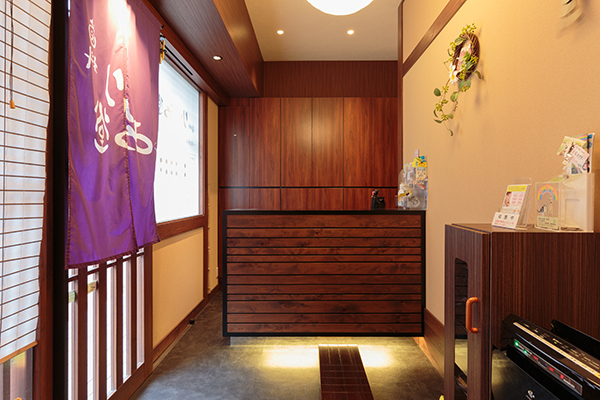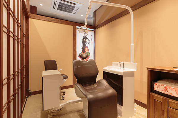 患者さんが、おうちでくつろぐような気分で、治療やメンテナンスを受けていただけるよう、当院の内外装は「和」をコンセプトにしています。紅殻格子の扉を開けていただくと、土間のような空間で、受付になっています。上がり框(かまち)の向こうは床の間のある待合室、診察室は畳風の床材を敷いた純和風の造りと細部までこだわりました。診療においては、予防歯科に力を入れており、虫歯や歯周病も、なるべく歯を削らずに治療するというのが、私のモットーです。歯は削れば削るほど寿命が短くなり、一度削った歯はもう二度と元の状態には戻らないので、私は歯を削るのが大嫌いなんです。そういうところも、一般的な歯科医院とは少し変わっているかもしれませんね。