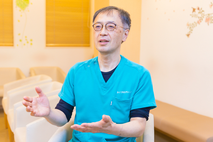 私は消化器・肝臓内科という専門がありますが、体のことで不安に思うことがあればまずは来院していただければと思います。どこの科にかかったら良いかもわからない時は、診察した上で専門の医療機関や適切な病院を紹介することもできると思いますので、アドバイスを受けるつもりでお気軽に来ていただければと思います。当院では苦痛の少ない経鼻の胃内視鏡検査を行っていますし、胃や大腸、肝臓といった消化器の専門的な治療に対応できます。また、いろいろな生活習慣病を合併した糖尿病患者さんが多く、対応に慣れているので、インスリンや各種内服薬で十分な治療も可能です。骨粗しょう症や睡眠時無呼吸症候群の検査も行っています。また、子どもの健診や予防接種では、インフルエンザ流行期などには院内感染を防ぐために午後の診察前に専用の時間を設けています。こちらもぜひご利用いただきたいですね。