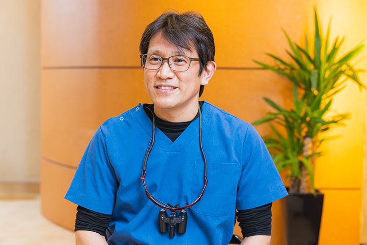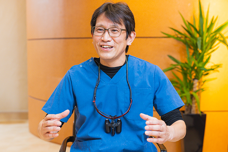 高校時代は理工系の研究者になりたかったのですが、受験に失敗してしまい浪人したんです。浪人中は時間ができたので、将来のことを深く考えました。そんな日々の中で、歯学部をめざしている友人の影響から、歯科医師という仕事について考え始めました。親や親戚に歯科医師がいたわけでもなく、歯科に対する知識もほとんど持っていなかったのですが、虫歯は自然治癒しないということだけは理解していました。自己修復することができないということは、誰かしらの手を借りなければならない。もし自分が関わることができれば、人の役に立てるのではないかと考えたんです。ただ私自身、歯科というと「痛い」、「怖い」、というイメージが強かった。ですから、「自分は、そうじゃない歯科医師になろう」と思いました。その気持ちを忘れずに現在に至っていますし、これからも貫き通します。