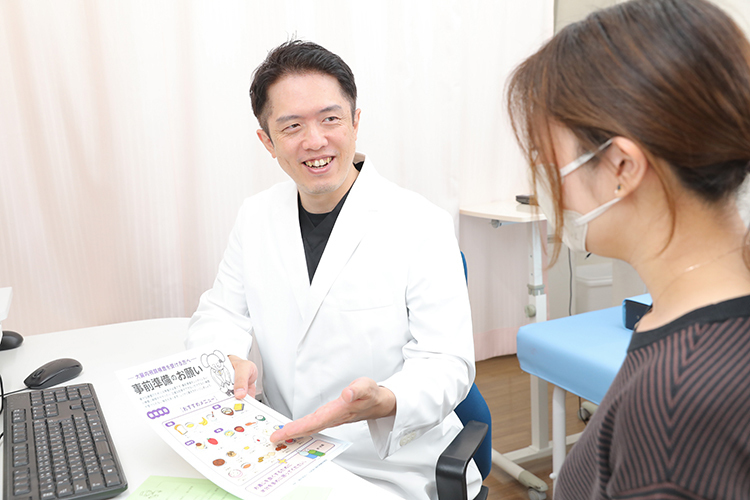 【佑香副院長】当院では女性医師も在籍し、検査のハードルをできる限り下げられる工夫をしています。院長は論理的で説明がうまく、私には男性の先生には伝えにくい相談もしていただけたらと思います。スタッフも良い人ばかりに恵まれ、優しく対応してくれますので、気楽な気持ちでいらしてください。