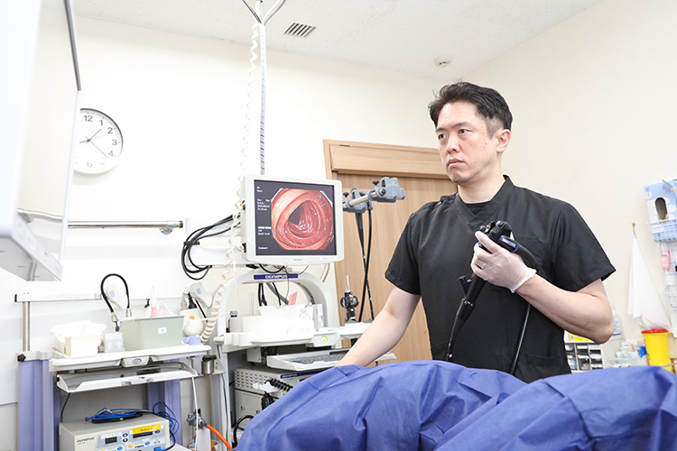 【建介院長】検査時の苦痛をできる限り軽減した内視鏡検査を行っていることが特徴です。大腸内視鏡では「水浸法」や「内視鏡的洗浄液注入法」といった患者さんにとって楽だと思われる検査方法を採用し、胃・大腸いずれも鎮静剤をきちんと使用することで、苦痛の軽減を図っています。また忙しい方に向け、胃と大腸の同日検査や、当日の検査にも対応しています。