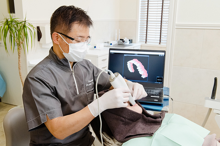 当院では、歯の根っこの治療や親知らずの抜歯、インプラント治療などに役立つ歯科用CTや、かぶせ物や詰め物、インプラント治療時に使うステントなどを精密に作製する際に必要な口腔内スキャナーを導入しています。近年、歯科医療はデジタル化が進んでいます。これまでは粘土のような印象材を使った型採りをして、仮合わせをして……といった過程を経なければなりませんでした。ですが今は、歯科用CTと口腔内スキャナーを使用すれば次回来院時には仕上がっていて、すぐに治療・手術に取りかかれるのです。また、従来の模型は一色だったのですが、口腔内スキャナーで撮るとカラーでわかりやすく、さらに実際のお口の中の状況をさまざまな角度で診られるのが利点だと思います。歯科用CTと併せて活用することで、将来の症状予測もしやすいです。今後も患者さんにとってメリットとなり、私にとっても使いやすい先進機器は積極的に導入していきたいですね。