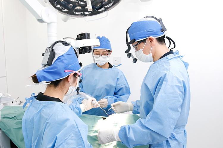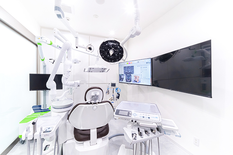 マイクロスコープは、これまで私自身、講習会や勉強会でその有益さを実感していましたので、今回3台導入しました。一番活躍するのは歯の根っこの治療・根管治療かと思いますが、実際の治療の現場はもちろん、しっかりと目で見て確認できますので診断の確実性の向上につながりますし、マイクロスコープの治療中画像を録画できますので、実際に患者さんに見ていただいて治療に納得していただくこともできると思います。また、インプラント治療などを行う広い個室の手術室も新たに設けました。これまで以上に各スタッフが動きやすく、麻酔専門の歯科医師が患者さんの様子を確認しやすいですし、処置に使うさまざまな器具を渡してくれる機械出しの助手は、実際の処置の様子をモニターで確認しながら効率良く機械出しができるようになりました。処置時間の時短もかない、患者さんの負担も減らせると思っています。