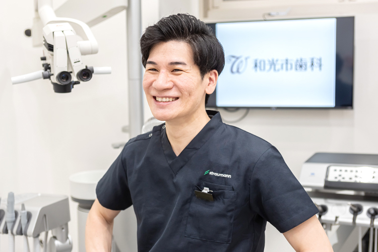 卒業後は院内のすべての仕事を理解したくて歯科医院で鍛えていただき、その後インプラント治療専門の歯科医院に約3年間在籍。多くの患者さんの診療に携わり、自分が幅広い治療に対応できる自信がついたタイミングで開院しました。現在は患者さんの多様なニーズに対応する総合的な診療に取り組んでいます。また、より多くの患者さんが通いやすいよう朝9時から夜9時まで通しで診療しています。患者さんにはできれば継続して長く通っていただきたいというのが私の願いです。継続して通っていただくことで患者さんの口腔内の情報を蓄積できれば、虫歯一つにしてもリスクや経過などを総合的に判断し、できるだけ歯を削らずに済むような適切な選択肢を提案できるようになります。ですので、歯科医院で定期的に診てもらうことには大きなメリットがあることをたくさんの方にぜひ知っていただきたいと思っています。