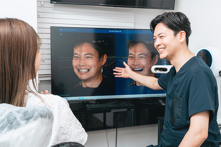 「見た目を良くしたい」といった患者さんのご希望に応えることと、医学的に適切な治療法を選ぶことを大事にしています。そのためには多様な検査・治療を提案できる環境が必要だと考え、歯科用CTや口腔内スキャナーといった先進機器をそろえているのです。最近ではフェイススキャナーを新たに導入し、口腔内だけでなく顔全体のバランスを見ながら治療を進めるために活用しています。ゴール到達時にどのような顔のバランスになるかの予想を、患者さんが視覚的に確認できるようにもなりました。治療後のイメージがしやすくなったので、安心して治療を受けていただけるでしょう。セカンドオピニオンで来られる方など、「理想に近づけたい」と強く思われている方に対して活用します。この頭部顔面用スキャナーは、マウスピース型装置を用いた矯正を提供する際にも役立てています。