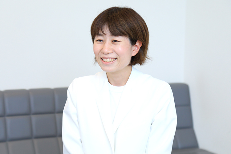 父が皮膚科の医師だったことが大きな理由でしょうか。私は京都出身なのですが、自宅にクリニックが併設されていましたので、小さい頃から父の働く姿を目にしてきました。忙しそうだなあということと、うちにいるときより口数が多いなあと思ったことを覚えています(笑)。今思えば、患者さんに丁寧に説明をしていたのですね。大学卒業後はさまざまな科をローテーションしたのですが、結局、父と同じ皮膚科を選びました。皮膚科は、自分で直接見て触れることで診断し治療を提案でき、状態の変化が見てわかりやすいので、そんなところにやりがいを感じています。実は今も、たまに難しい症例がある時父に相談しアドバイスをもらうことも。経験の多い父の意見はとても参考になります。