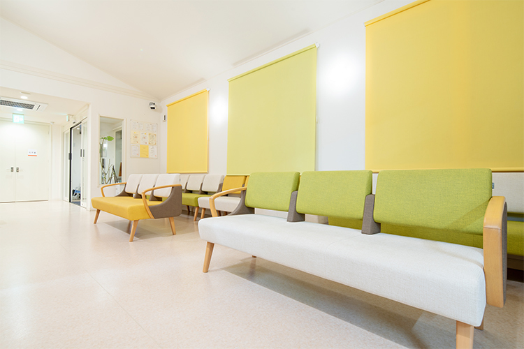 脳神経という言葉に対して、重い、怖いといったイメージを抱きがちですので、それを払拭できるような明るく温かい雰囲気になるように意識しています。優しい色合いのグリーンとイエローをメインカラーにして、ロゴのキャラクターもかわいいフクロウです。フクロウは、知恵の象徴といわれているそうで、脳神経内科にも合っていると思っています。待合室も比較的広くして、院内はバリアフリーにしてあります。