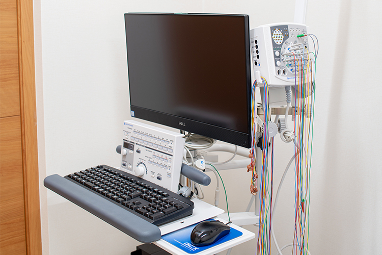 神経伝導速度検査と脳波検査に対応しています。神経伝導速度検査は手足にしびれが起きている場合などに、手足の神経に電気を流して末梢神経に障害が出ているかを確認する検査です。しびれがある時に、脳神経外科でCT検査して異常がない。整形外科に行っても首や腰に何も問題はない。それでもしびれがあるという場合などには、この神経伝導速度検査は非常に有用です。脳波検査は、脳波の揺らぎを調べる検査で、てんかんや意識の混濁が起きているときなどに行います。当院にはMRIこそありませんが、CT検査や神経伝導速度検査、脳波検査によって、大きな病院と遜色ない診断が可能であると自負しています。